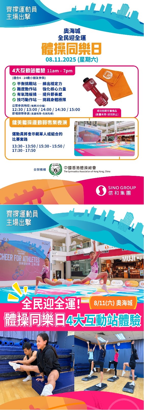 中國香港體操總會聯同奧海城將於11月8日(星期六)於奧海城舉行「體操同樂日」 - 活動資料